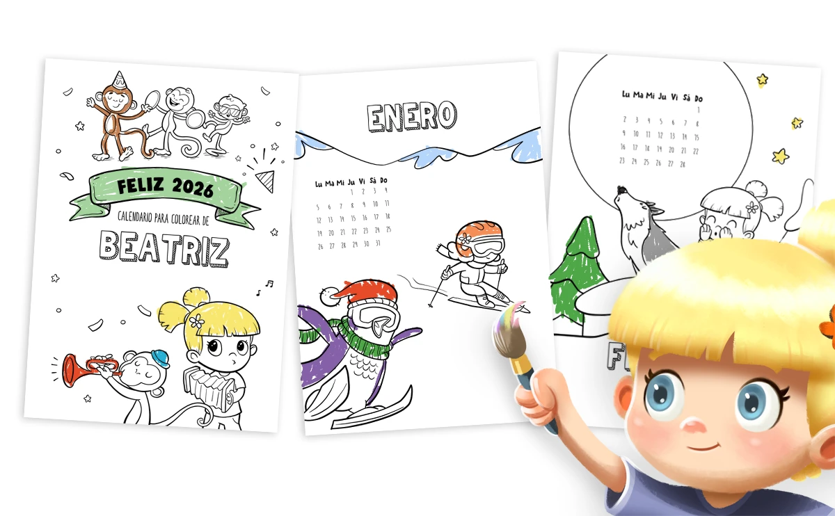 ¡Tu pequeño se divertirá coloreando nuestro precioso calendario 2026 personalizado!
